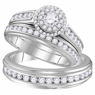 10K WHITE GOLD ROUND DIAMOND SOLITAIRE MATCHING WEDDING RING SET 1-5/8 CTTW