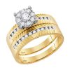 14K YELLOW GOLD ROUND DIAMOND CLUSTER MATCHING WEDDING RING SET 3/4 CTTW