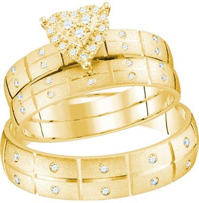 14K YELLOW GOLD ROUND DIAMOND HEART MATCHING WEDDING RING SET 1/4 CTTW