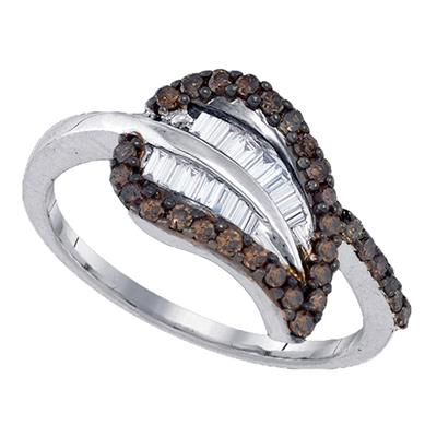 STERLING SILVER BROWN DIAMOND LEAF PETAL CLUSTER RING 1/2 CTTW
