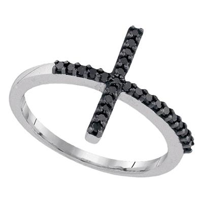 STERLING SILVER ROUND BLACK DIAMOND CROSS RELIGIOUS RING 1/5 CTTW