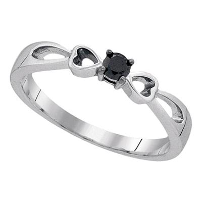 STERLING SILVER ROUND BLACK DIAMOND SOLITAIRE PROMISE BRIDAL RING 1/10 CTTW