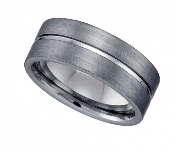 Tungsten Brushed Center Grooved Comfort-fit Wedding Band